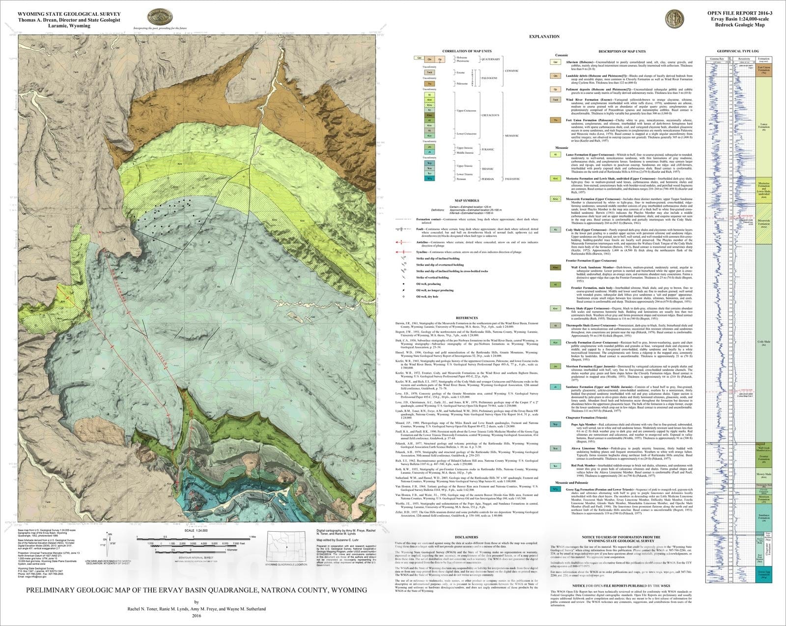 Map : Preliminary geologic map of the Ervay Basin quadrangle, Natrona County, Wyoming, 2016 Cartography Wall Art :