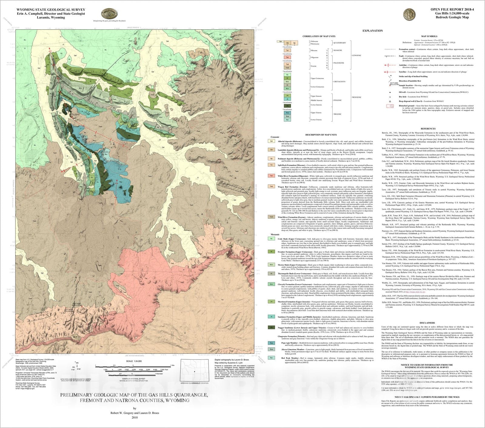 Map : Preliminary geologic map of the Gas Hills quadrangle, Fremont and Natrona counties, Wyoming, 2018 Cartography Wall Art :