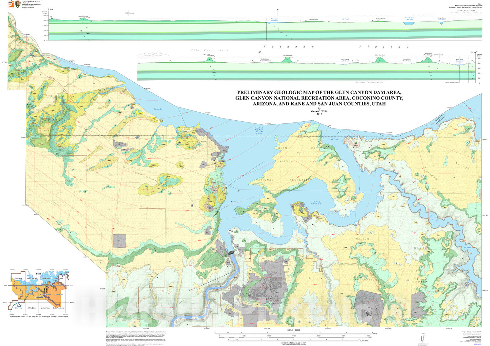 Map : Preliminary geologic map of the Glen Canyon Dam area, Glen Canyon National Recreation Area, Coconino County, Arizona, , 2013 Cartography Wall Art :