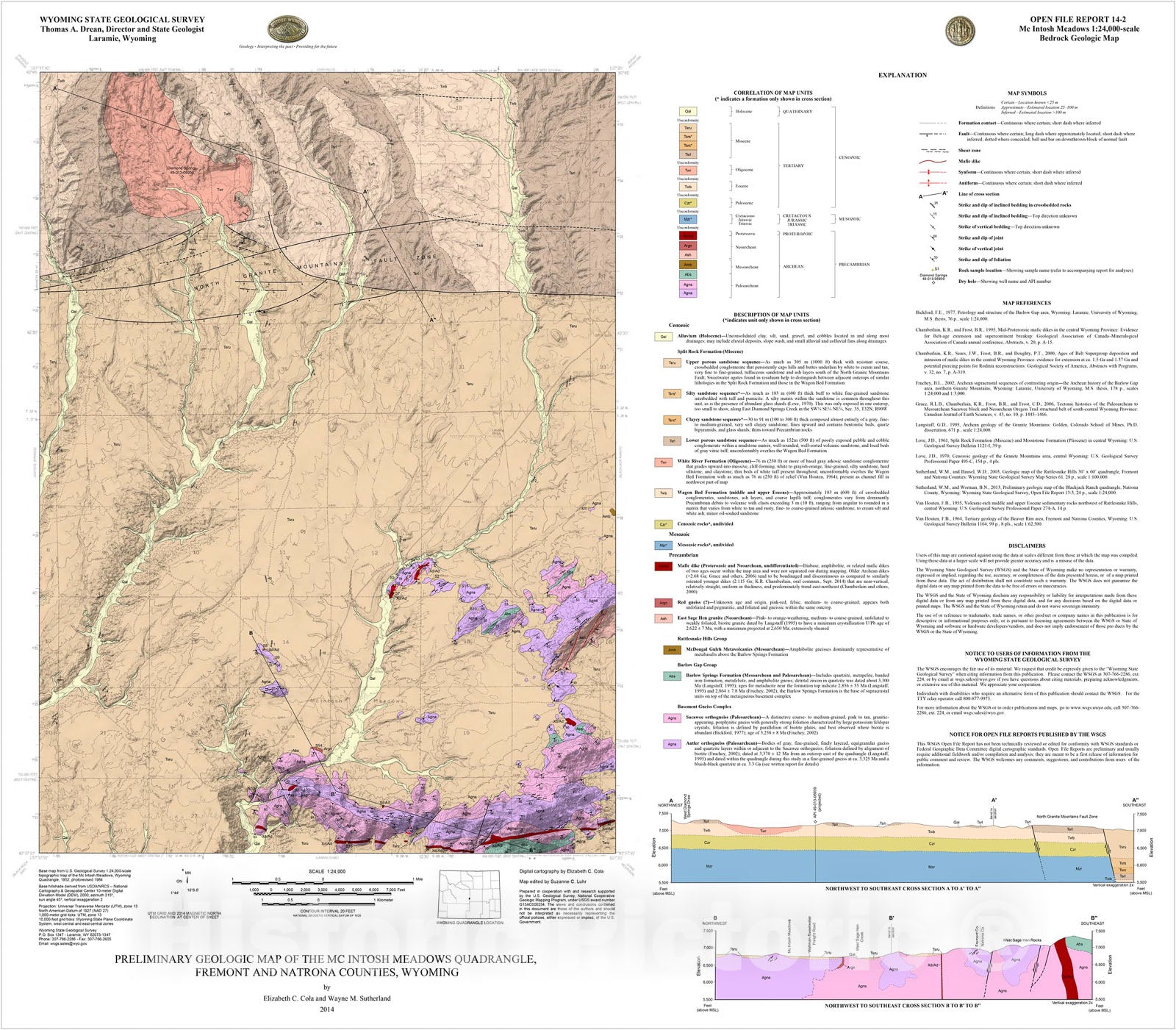 Map : Preliminary geologic Map of the McIntosh Meadows 7.5' Quadrangle, Fremont and Natrona Counties, Wyoming, 2014 Cartography Wall Art :