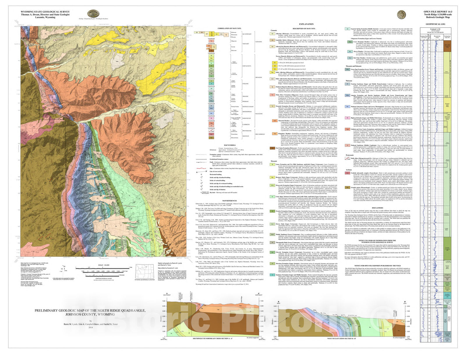 Map : Preliminary Geologic Map of the North Ridge 7.5' Quadrangle, Johnson County, Wyoming, 2014 Cartography Wall Art :