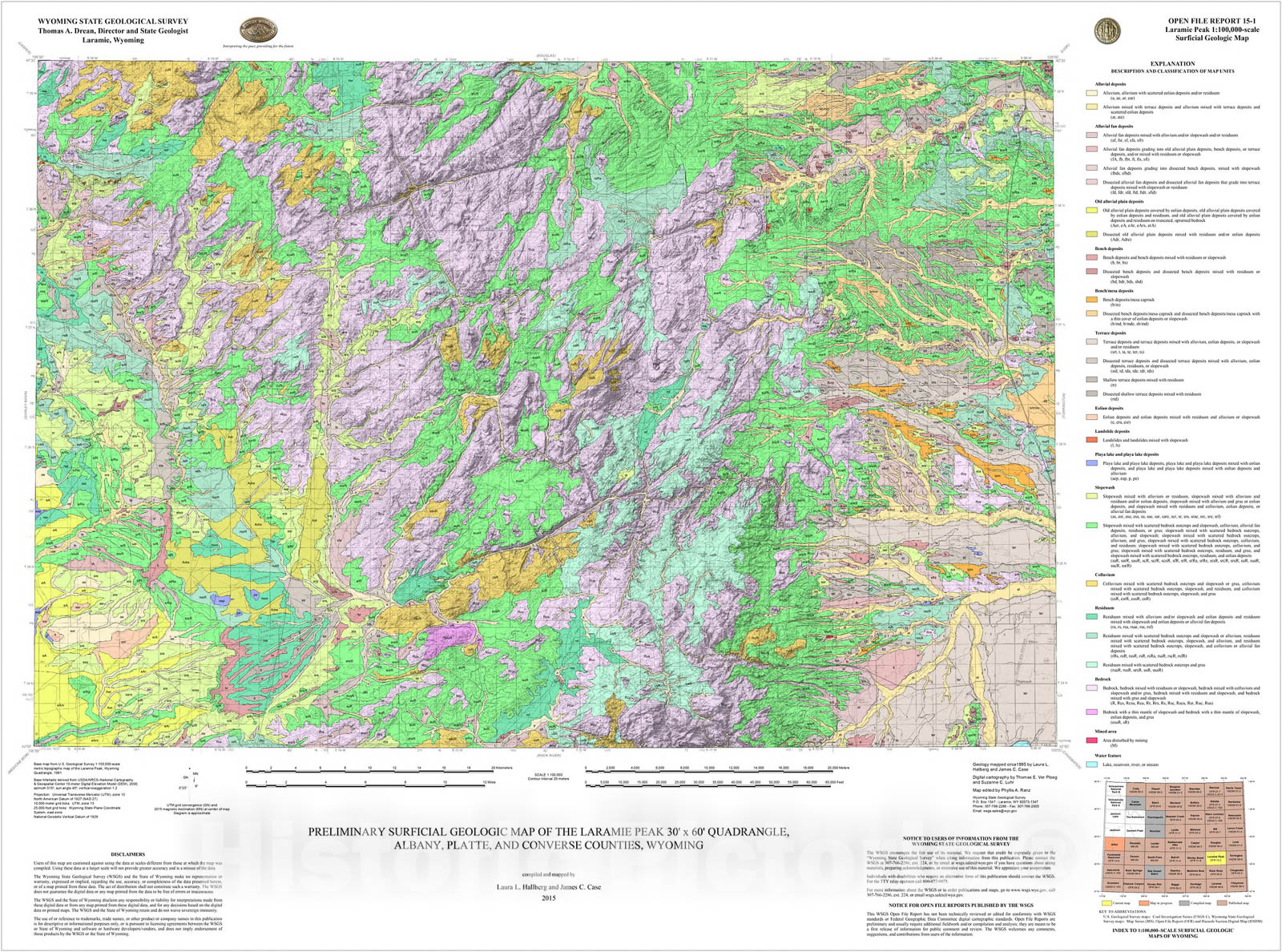 Map : Preliminary Surficial Geologic Map of the Laramie Peak 30' x 60' Quadrangle, Albany, Platte, and Converse Counties, Wyoming, 2015 Cartography Wall Art :