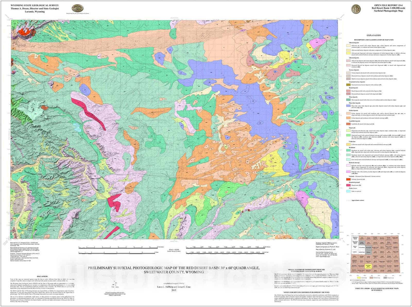 Map : Preliminary Surficial Photogeologic Map of the Red Desert Basin 30' x 60' Quadrangle, Sweetwater County, Wyoming, 2015 Cartography Wall Art :