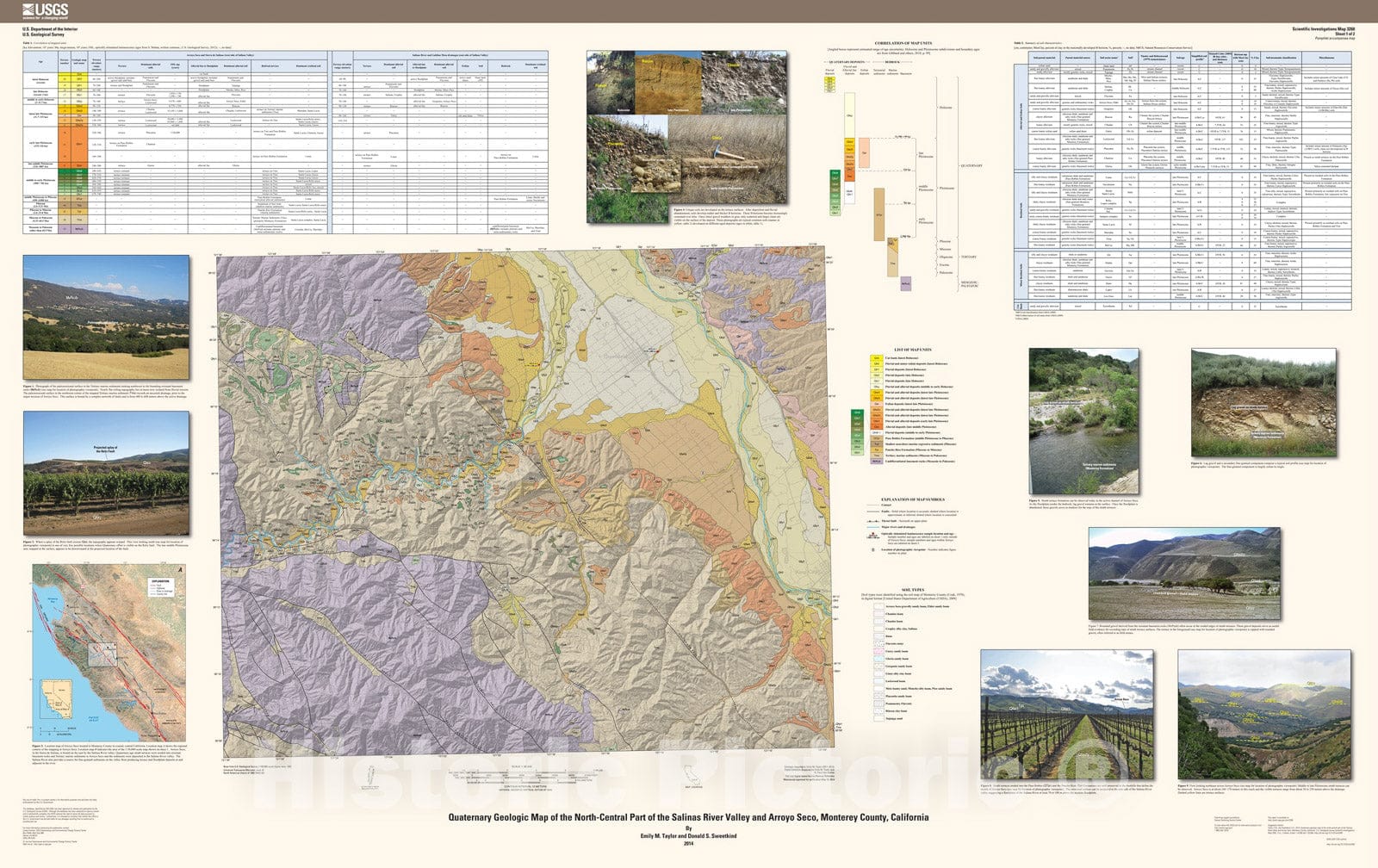 Map : Quaternary geologic map of the north-central part of the Salinas River Valley and Arroyo Seco, Monterey County, California, 2014 Cartography Wall Art :