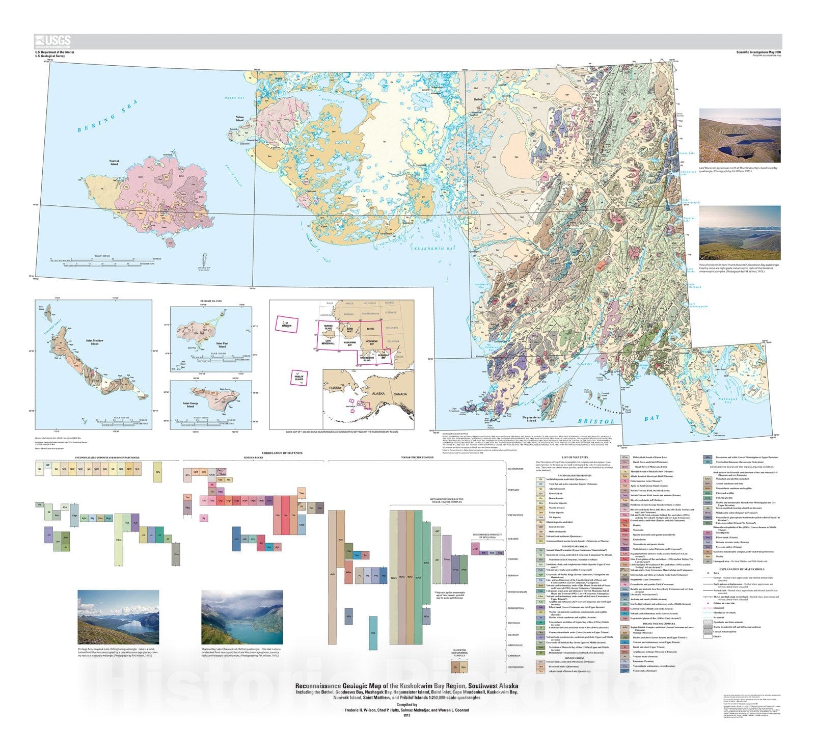 Map : Reconnaissance geologic map of the Kuskokwim Bay region, southwest Alaska including the Bethel, Goodnews Bay, Nushagak Island, Sai, 2013 Cartography Wall Art :