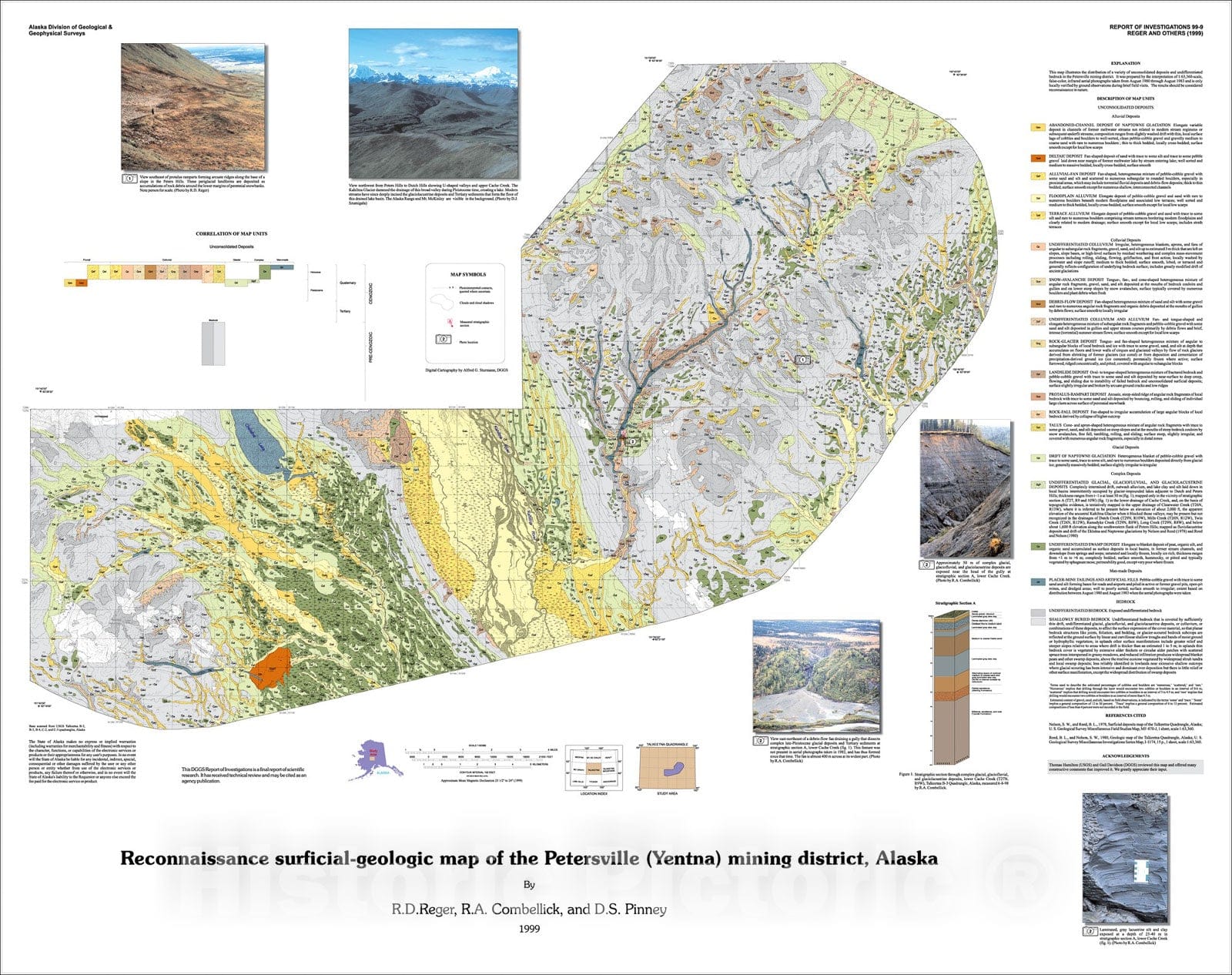 Map : Reconnaissance surficial-geologic map of the Petersville (Yentna) mining district, Alaska, 1999 Cartography Wall Art :