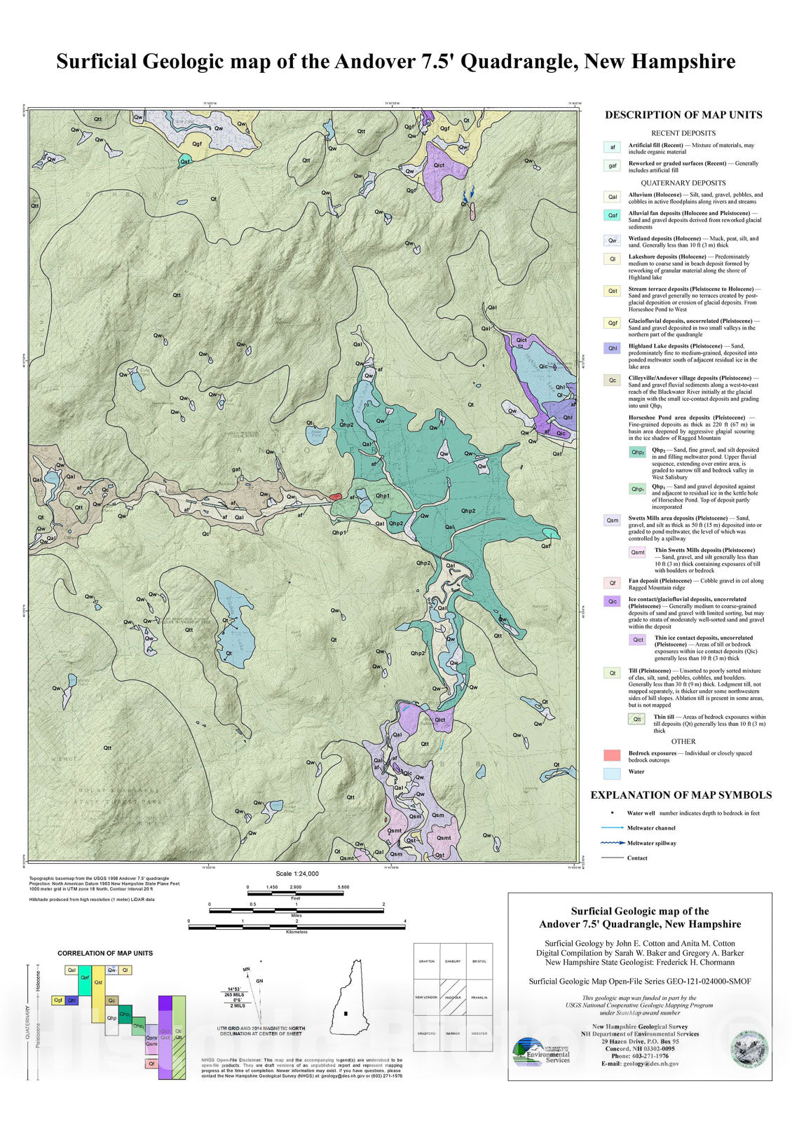 Map : Surficial Geologic Map of the Andover quadrangle, Merrimack County, New Hampshire, 2013 Cartography Wall Art :