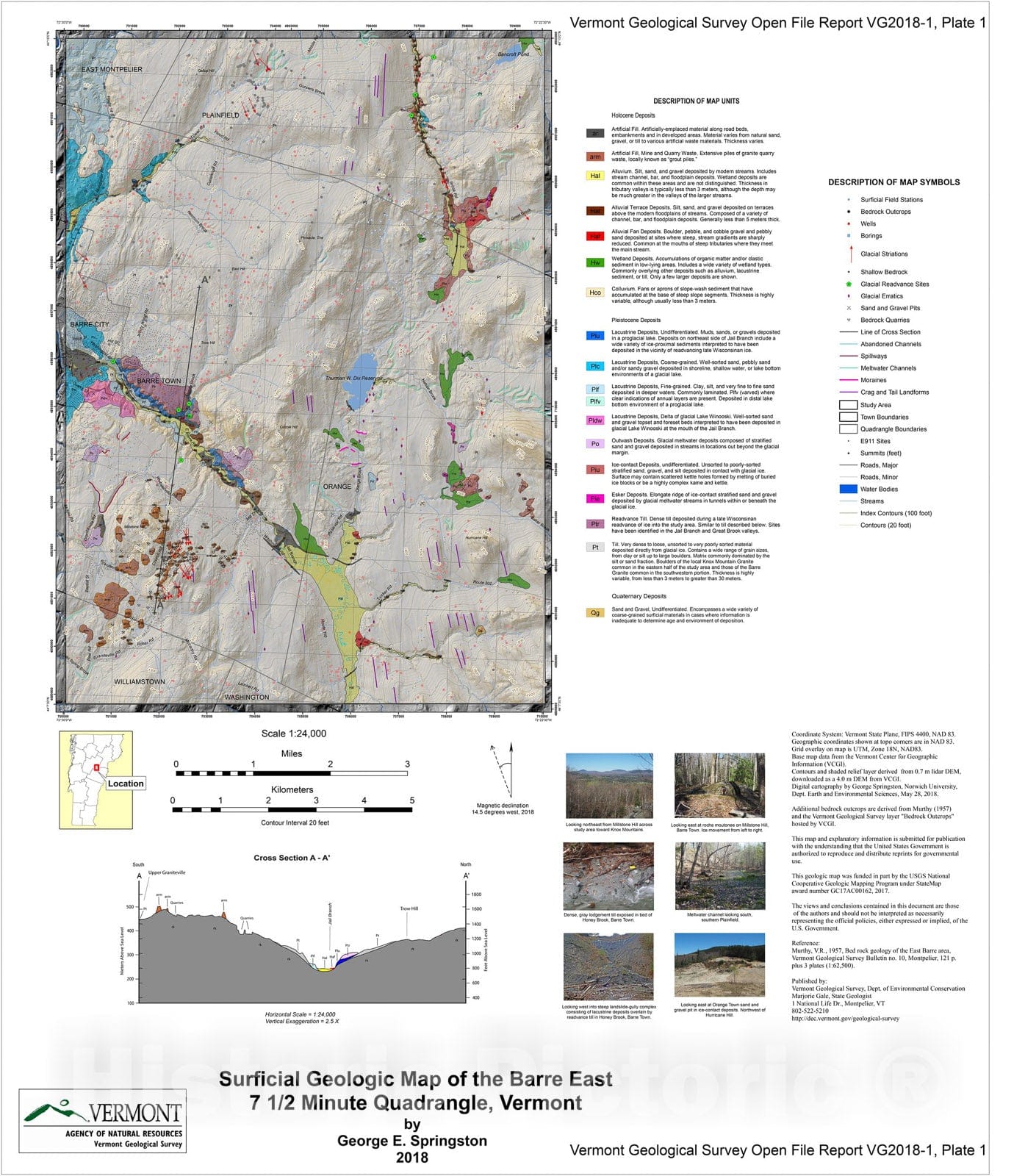 Map : Surficial Geologic Map of the Barre East 7.5 Minute Quadrangle, Vermont, 2018 Cartography Wall Art :