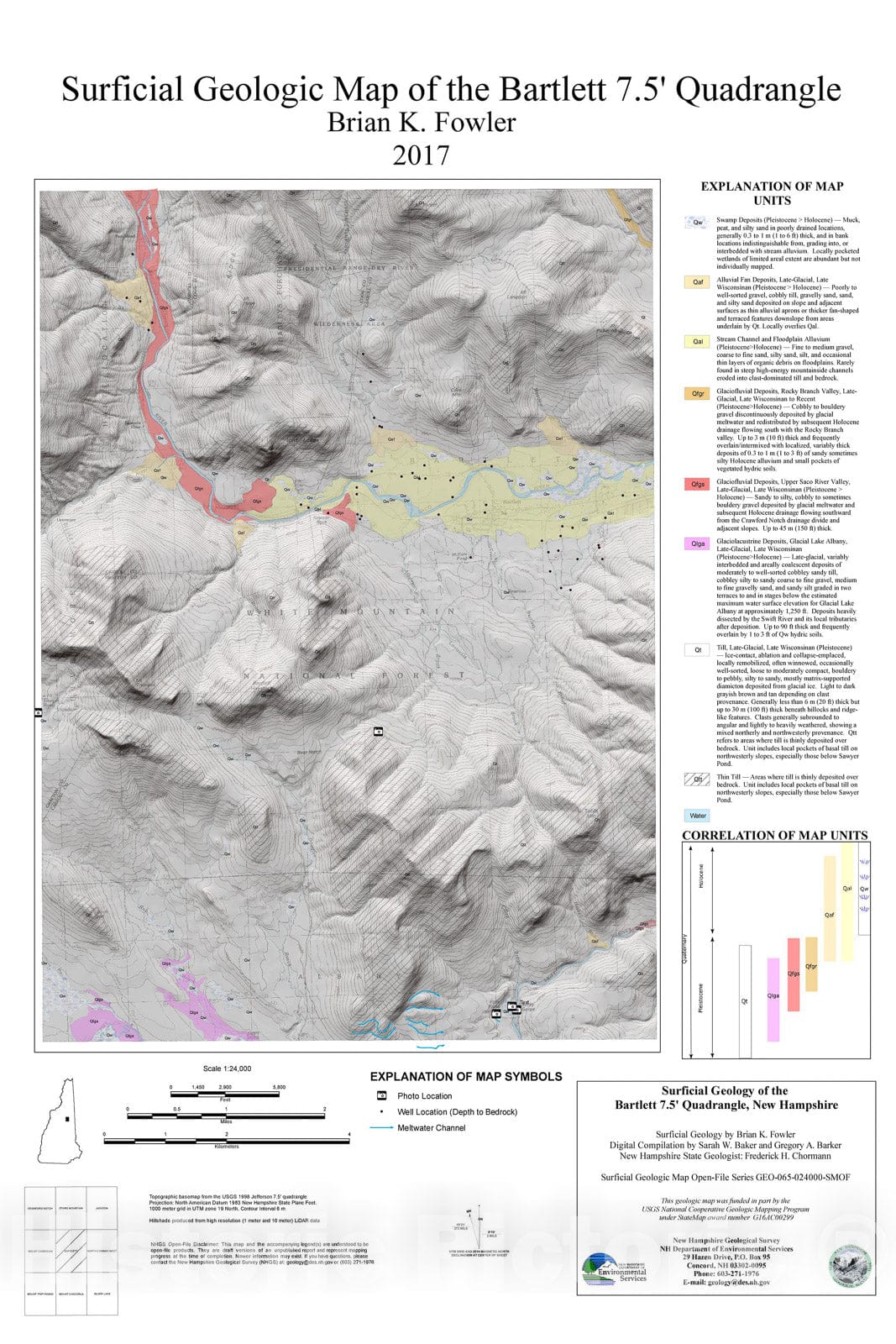 Map : Surficial geologic map of the Bartlett 7.5' quadrangle, New Hampshire, 2017 Cartography Wall Art :