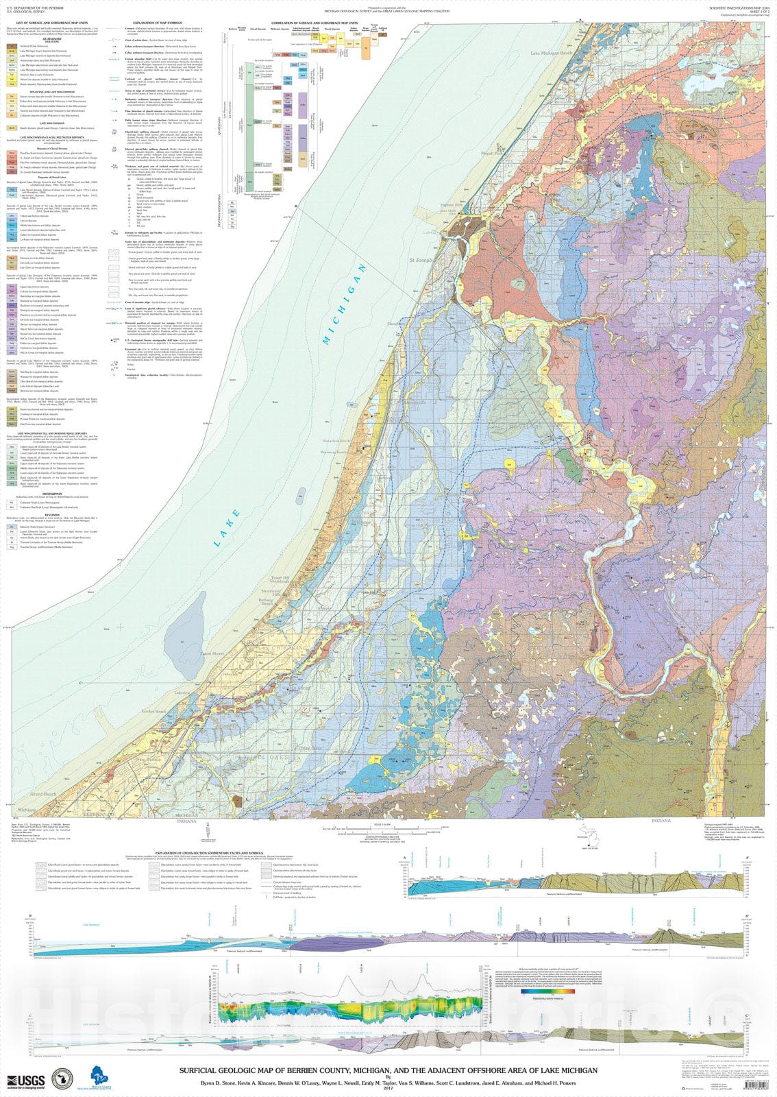 Map : Surficial geologic map of Berrien County, Michigan, and the adjacent offshore area of Lake Michigan, 2017 Cartography Wall Art :