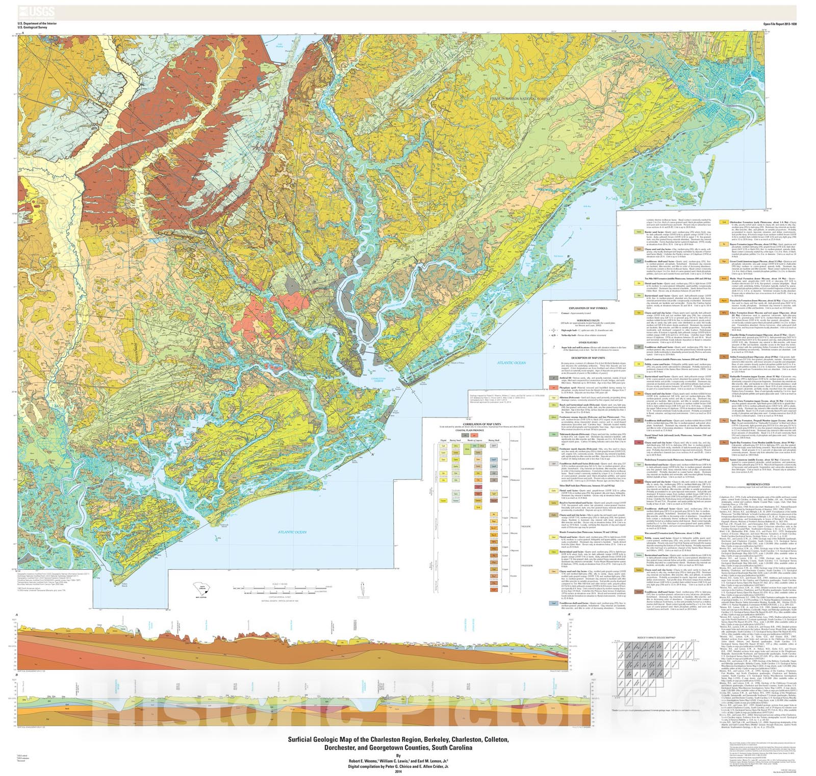 Map : Surficial geologic map of the Charleston region, Berkeley, Charleston, Colleton, Dorchester, and Georgetown Counties, South Carolina, 2014 Cartography Wall Art :
