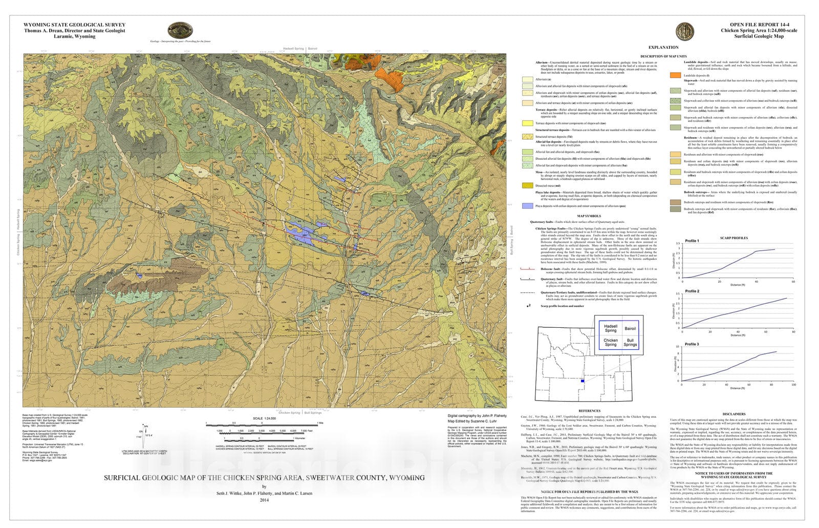 Map : Surficial geologic map of the Chicken Spring area, Sweetwater County, Wyoming, 2014 Cartography Wall Art :