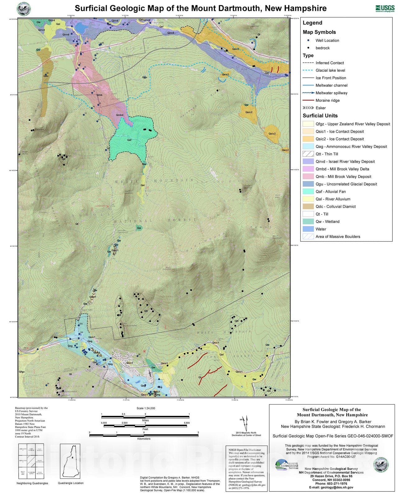 Map : Surficial geologic map of the Mt. Dartmouth, New Hampshire, 2015 Cartography Wall Art :