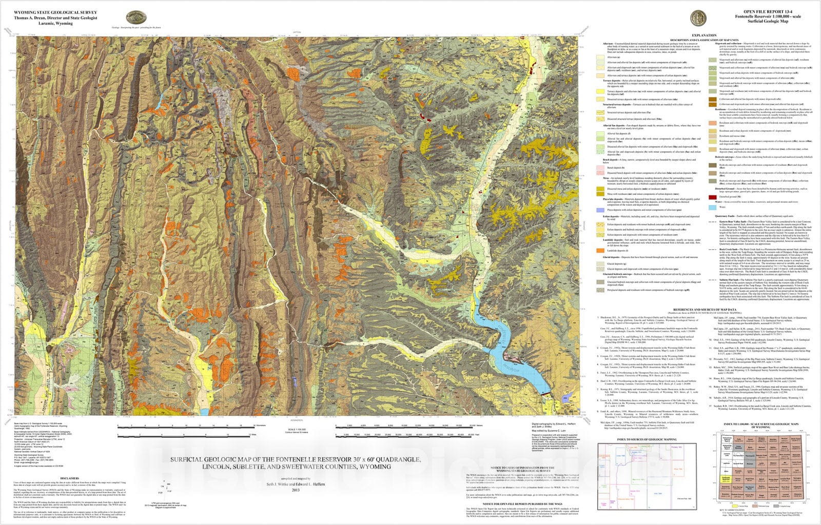 Map : Surficial Geologic Map of the Fontenelle Reservoir 30' x 60' Quadrangle, Lincoln, Sublette, and Sweetwater Counties, Wyoming., 2013 Cartography Wall Art :