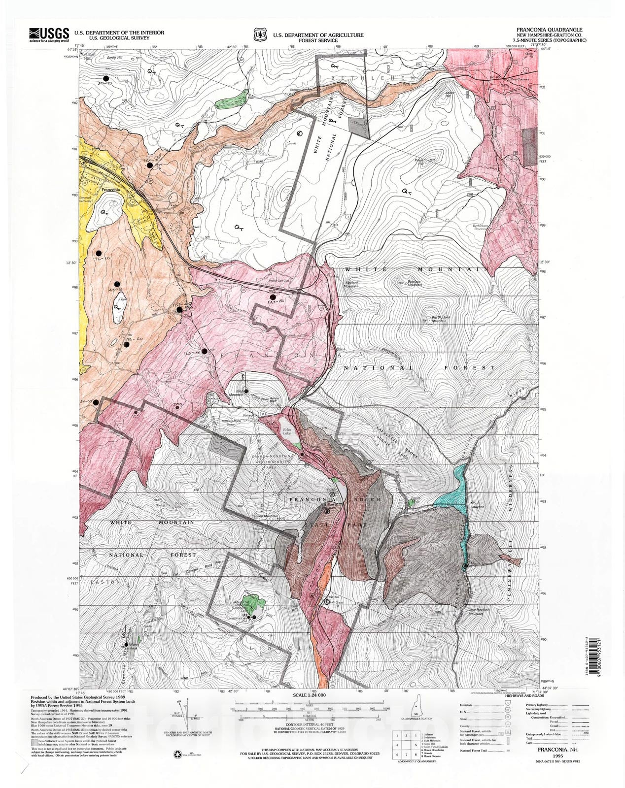 Map : Surficial Geologic Map of the Franconia 7.5 Minute Quadrangle, 2013 Cartography Wall Art :