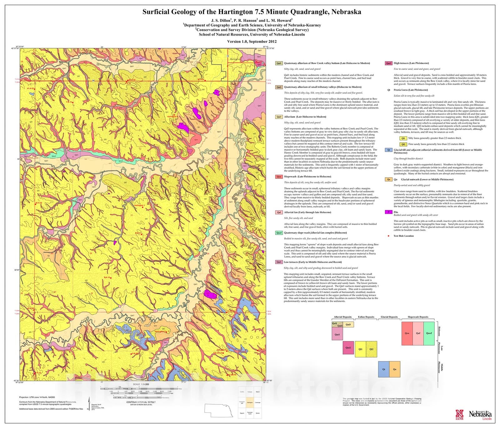 • Map : Surficial Geologic Map of the Hartington, Nebraska 7.5-Minute Quadrangle, 2012 Cartography Wall Art :