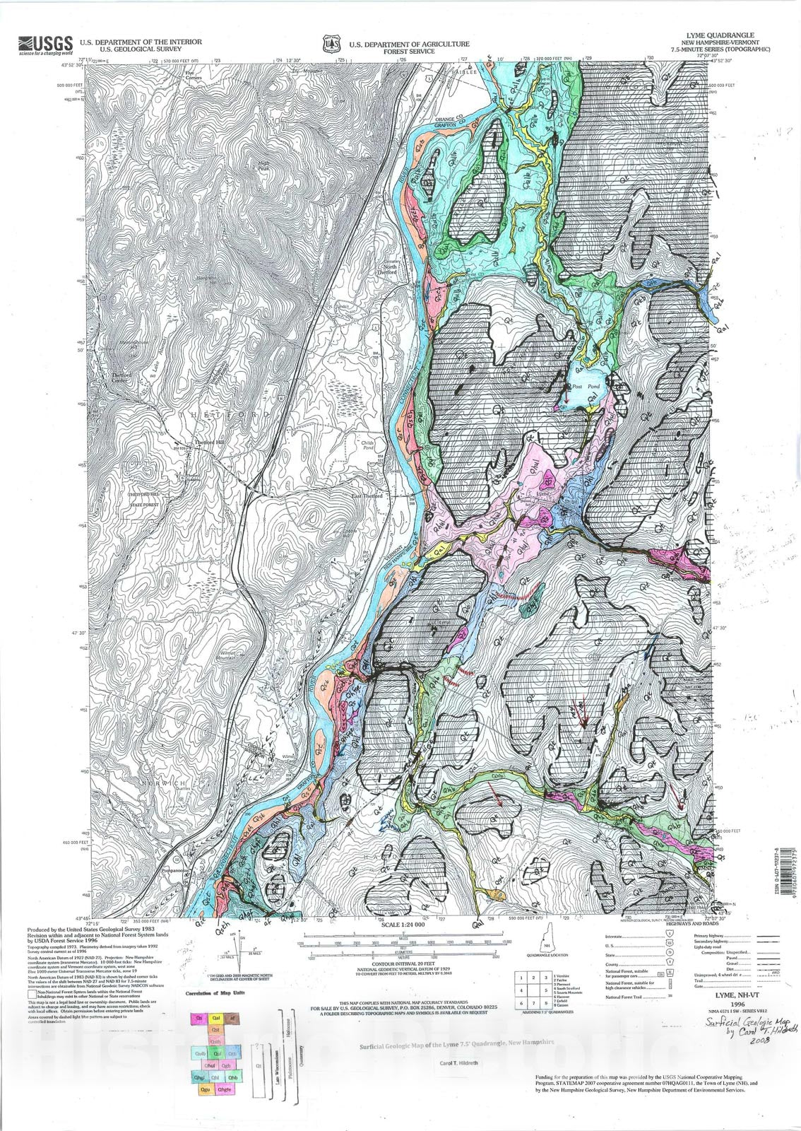 Map : Surficial geologic map of the Lyme 7.5-minute quadrangle, New Hampshire, 2008 Cartography Wall Art :