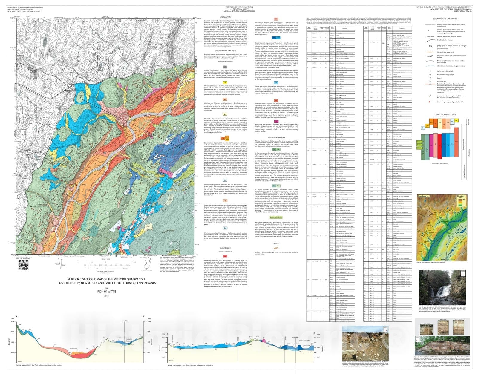 Map : Surficial geologic map of the Milford quadrangle, Sussex County, New Jersey, and part of Pike County, Pennsylvania, 2012 Cartography Wall Art :