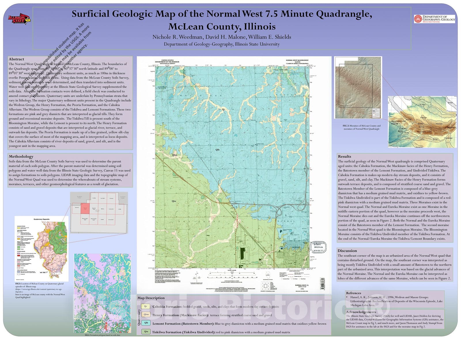 Map : Surficial geologic map of the Normal West 7.5 Minute Quadrangle, McLean County, Illinois, Cartography Wall Art :