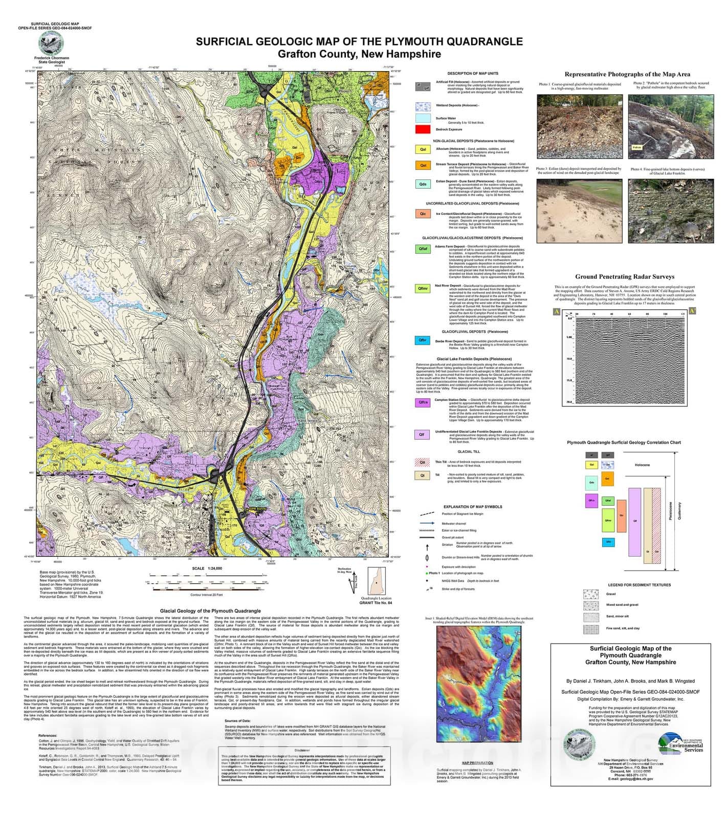 Map : Surficial Geologic Map of the Plymouth Quadrangle, Grafton County, New Hampshire, 2013 Cartography Wall Art :