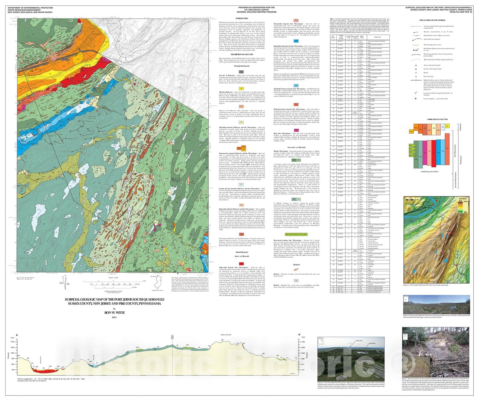 Map : Surficial geologic map of the Port Jervis South quadrangle, Sussex County, New Jersey, and Pike County, Pennsylvania, 2013 Cartography Wall Art :