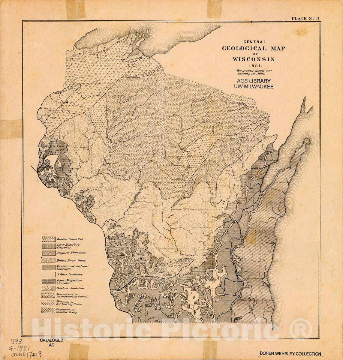 Map : Wisconsin 1881 2, General geological map of Wisconsin, 1881 , Antique Vintage Reproduction