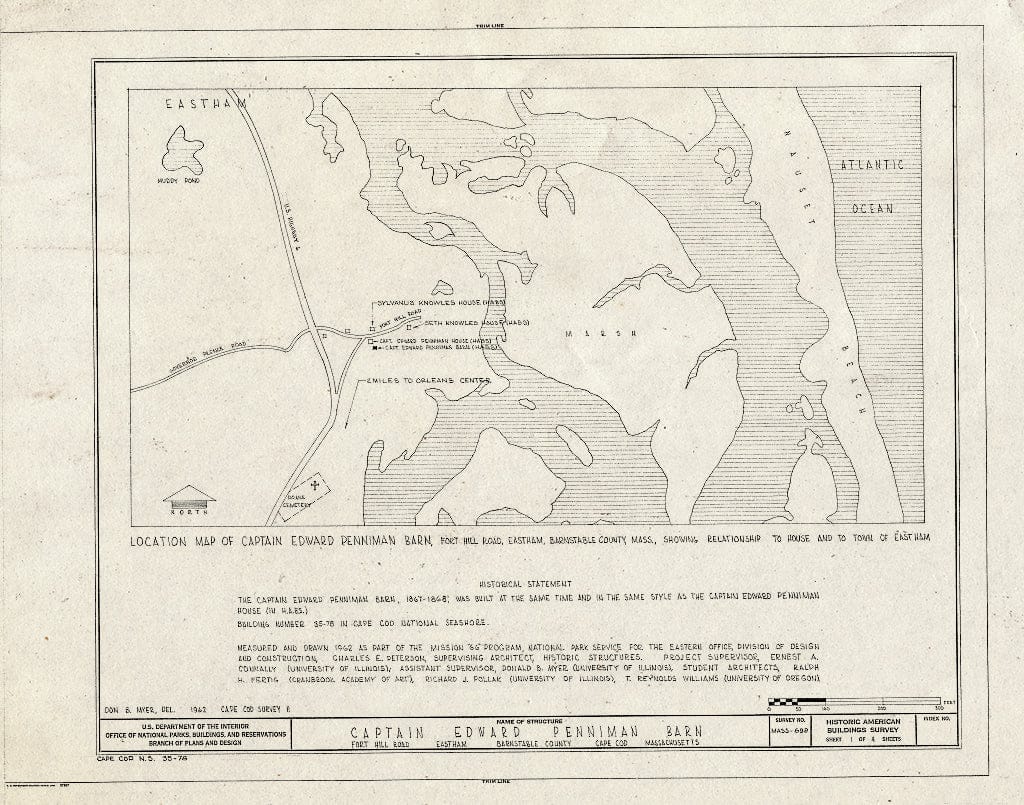 Blueprint 1. Location map and Historical Statement - Captain Edward Penniman Barn, Fort Hill Road, Eastham, Barnstable County, MA