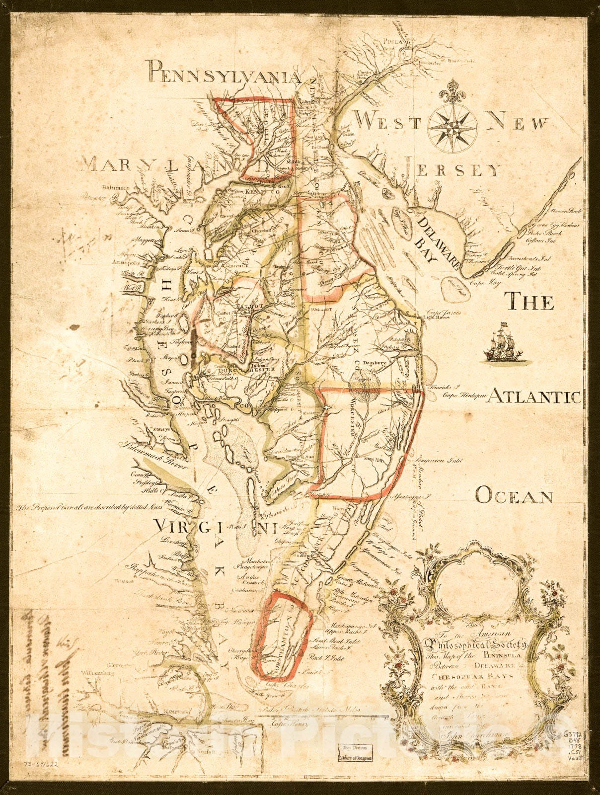 Historic 1778 Map - to The American Philosophical Society, This map of The Peninsula Between Delaware & Chesopeak Bays