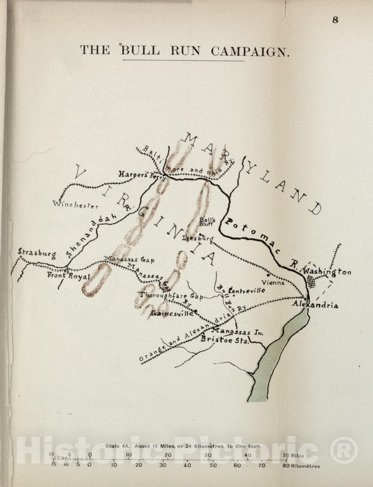 Historic 1910 Map - The American Civil War-maps. - Bull Run Campaign 1