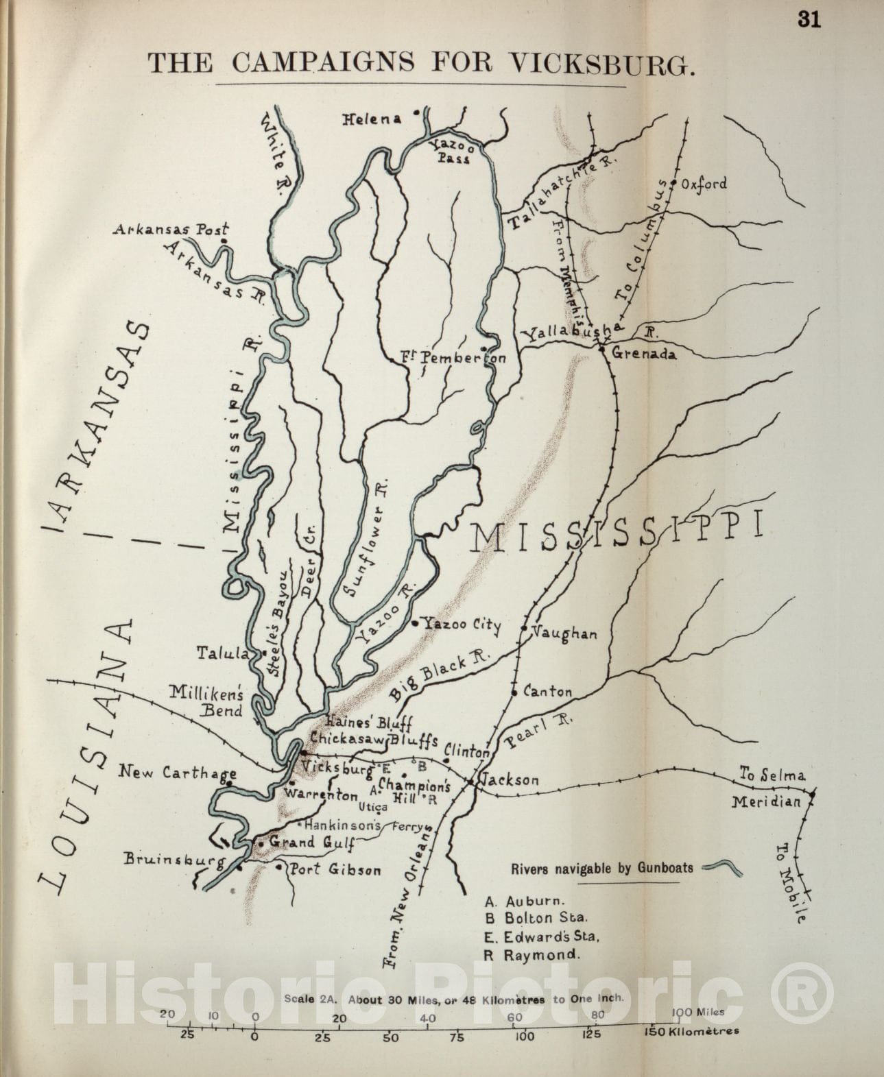 • .Historic 1910 Map - The American Civil War-maps. - Campaigns for Vicksburg 2