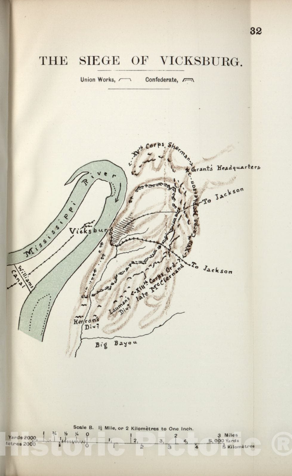 • Historic 1910 Map - The American Civil War-maps. - Siege of Vicksburg 1