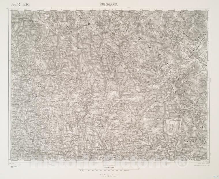 • .Historic 1911 Map - Kuschwarda. Austro-Hungarian Monarchy. Militargeographisches Institut - Vintage Wall Art