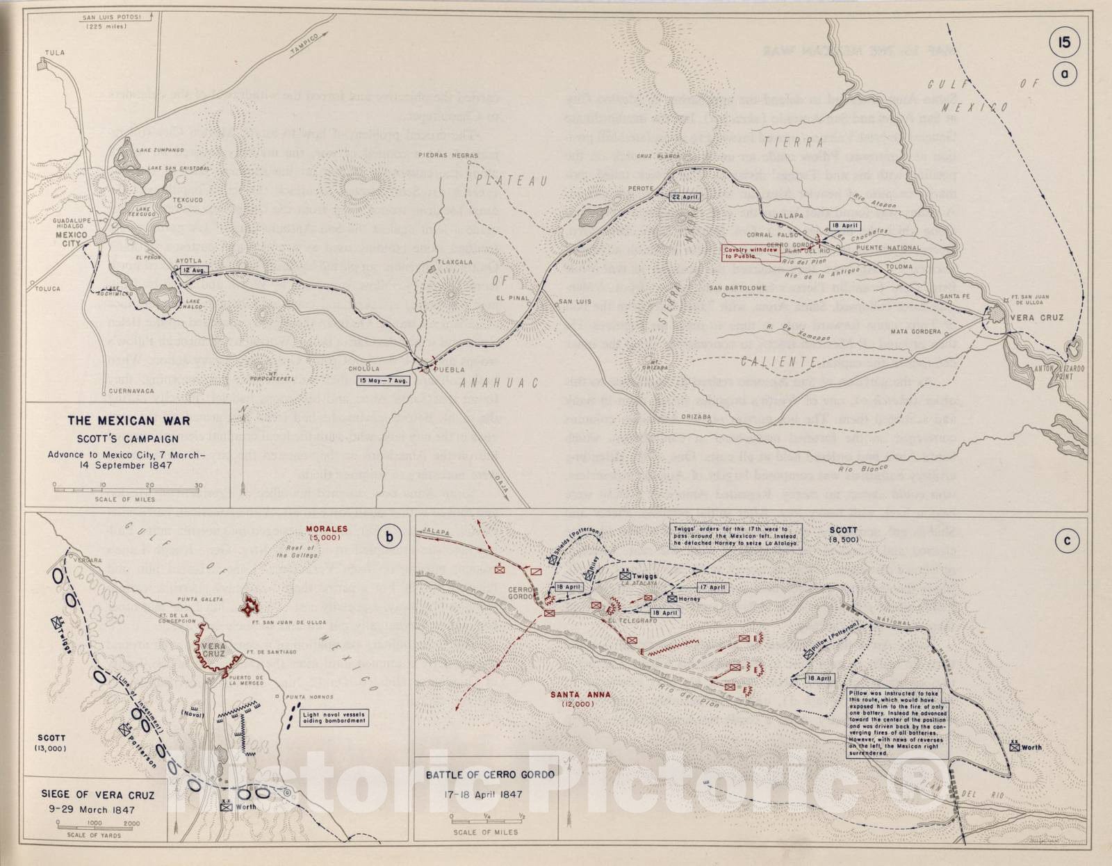 • .Historic 1959 Map - The West Point Atlas of American Wars - Mexican War, 1846-1847