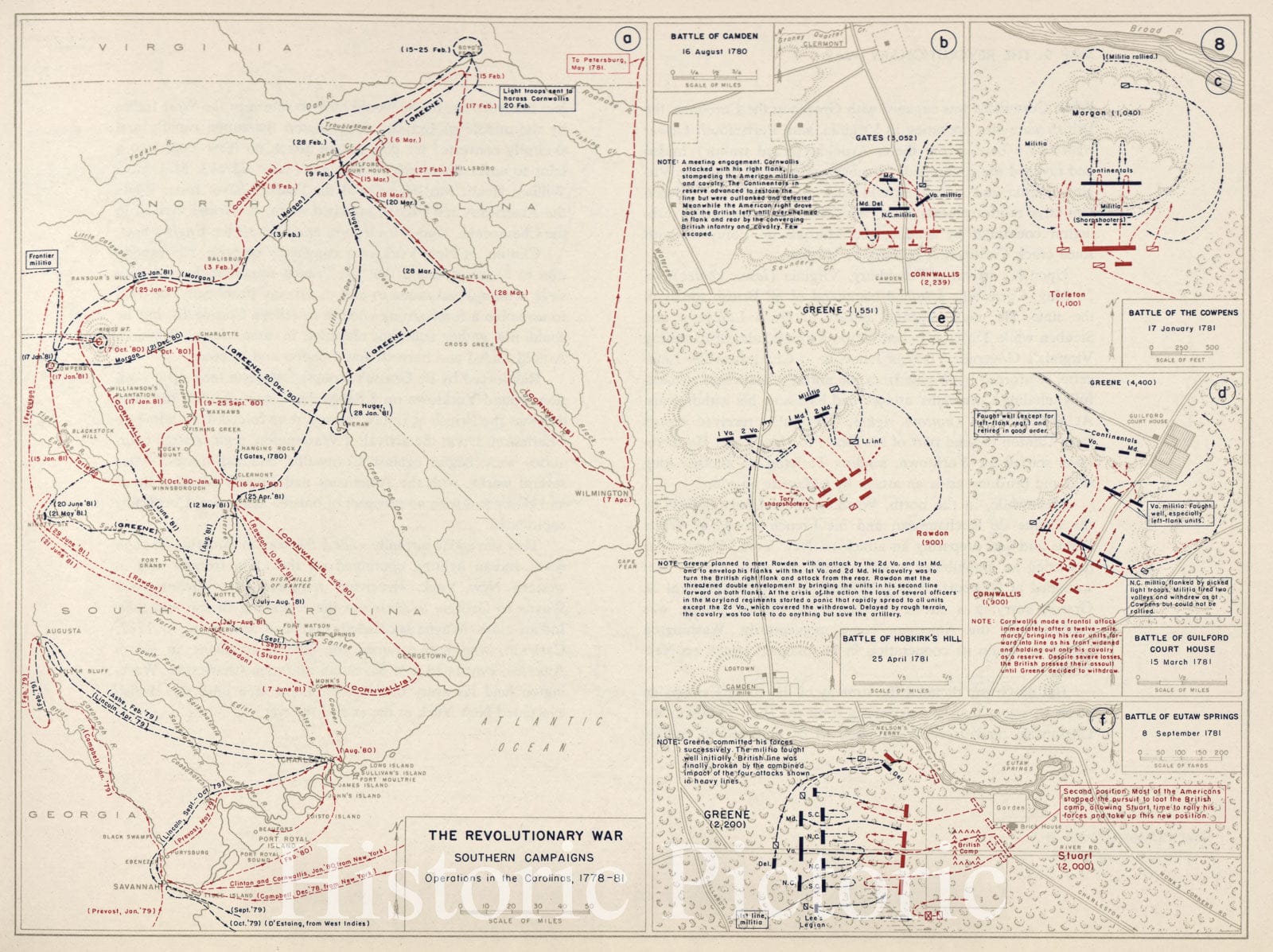 Historic 1962 Map - The West Point Atlas of The Civil War - Revolutionary War - Camden,Cowpens,Guilford,Hobkirk's Hill,Eutaw Springs