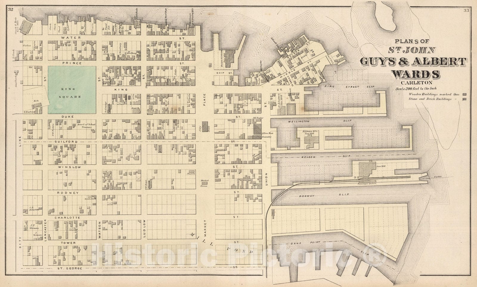 Historic Map : 1875 St. John: Guys & Albert Wards, Carleton. (New Brunswick). - Vintage Wall Art