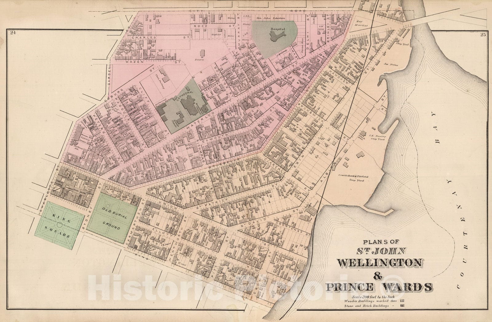 Historic Map : 1875 St. John: Wellington & Prince Wards. (New Brunswick). - Vintage Wall Art