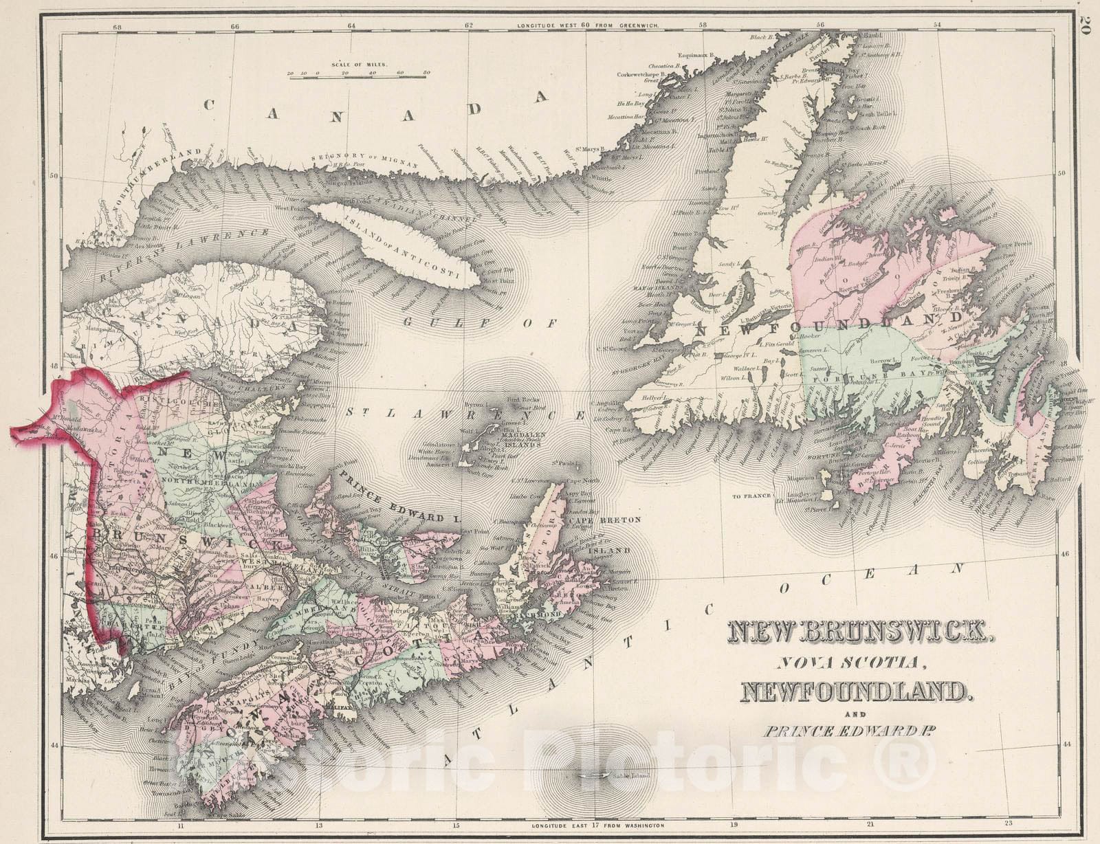 Historic Map : 1878 New Brunswick, Nova Scotia, Newfoundland, and Prince Edward Island. - Vintage Wall Art
