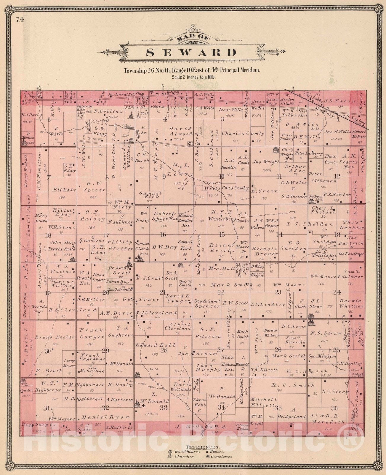 Historic Map : 1886 Seward Township, Winnebago County, Illinois. - Vintage Wall Art