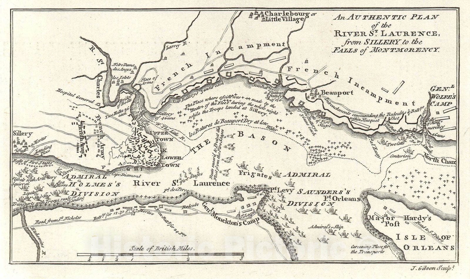 Historic Map : Battle of Quebec, Canada during The French and Indian War, Gibson, 1759, Vintage Wall Art