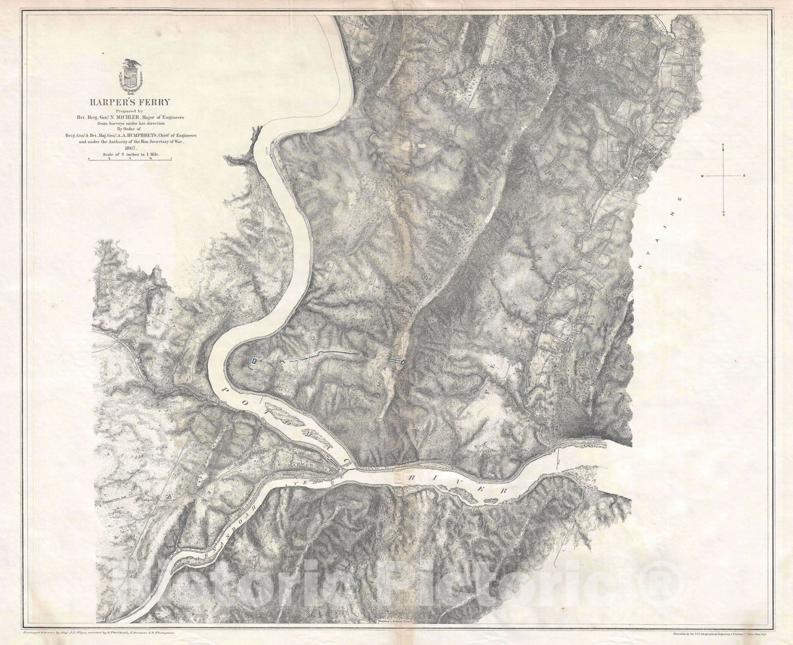 • .Historic Map : The Battlefied of Harper's Ferry during The U.S. Civil War, Weyss, 1867, Vintage Wall Art