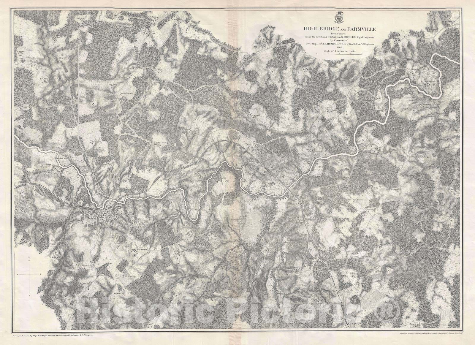 Historic Map : The Battlefield of High Bridge during The American Civil War, Weyss, 1867, Vintage Wall Art