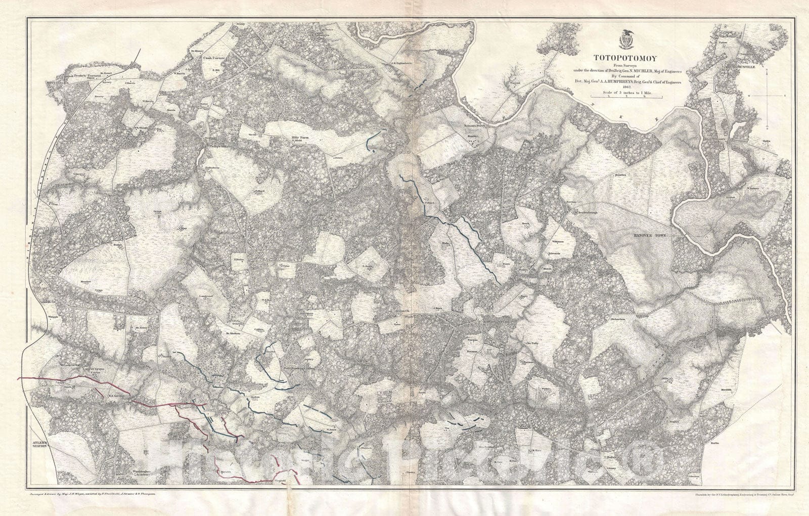 • .Historic Map : Battlefield of Totopotomoy Creek during The U.S. Civil War, Weyess, 1867, Vintage Wall Art