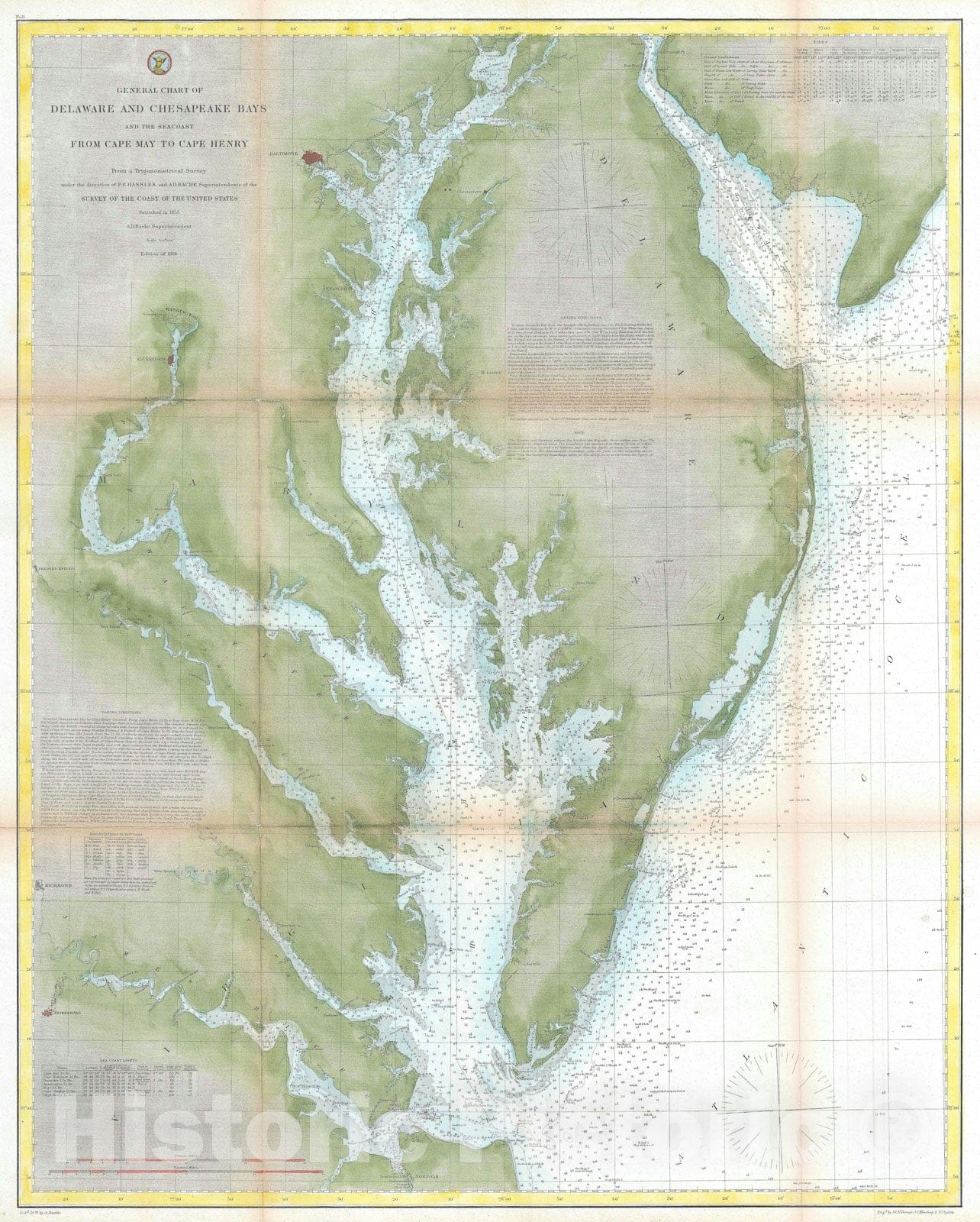• Historic Map : The Chesapeake Bay and Delaware Bay, U.S. Coast Survey, 1866 v2, Vintage Wall Art