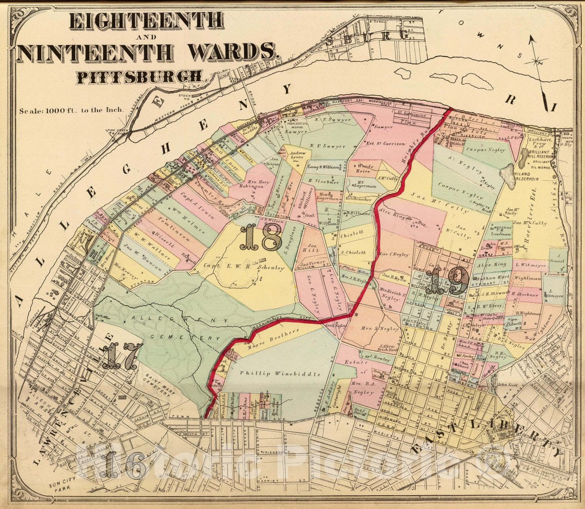 Historic Map : Eighteenth and Nineteenth wards, Pittsburgh. (1872), 1872 City Atlas - Vintage Wall Art