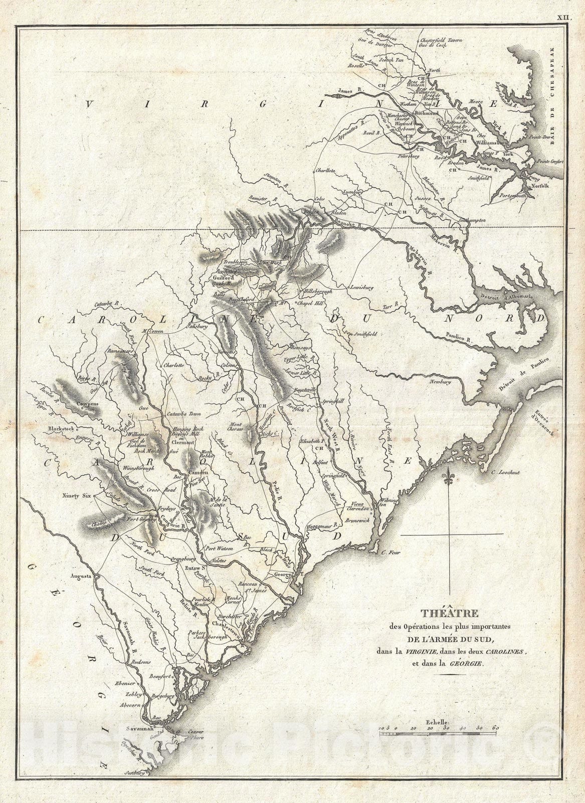 Historic Map : Marshall Revolutionary War Map of South Carolina and North Carolina, 1807, Vintage Wall Art