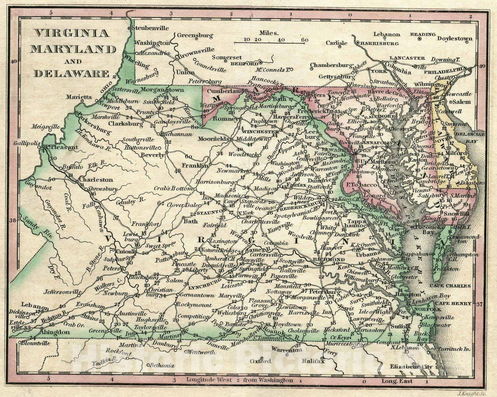 National Atlas - 1828 Virginia, Maryland And Delaware
