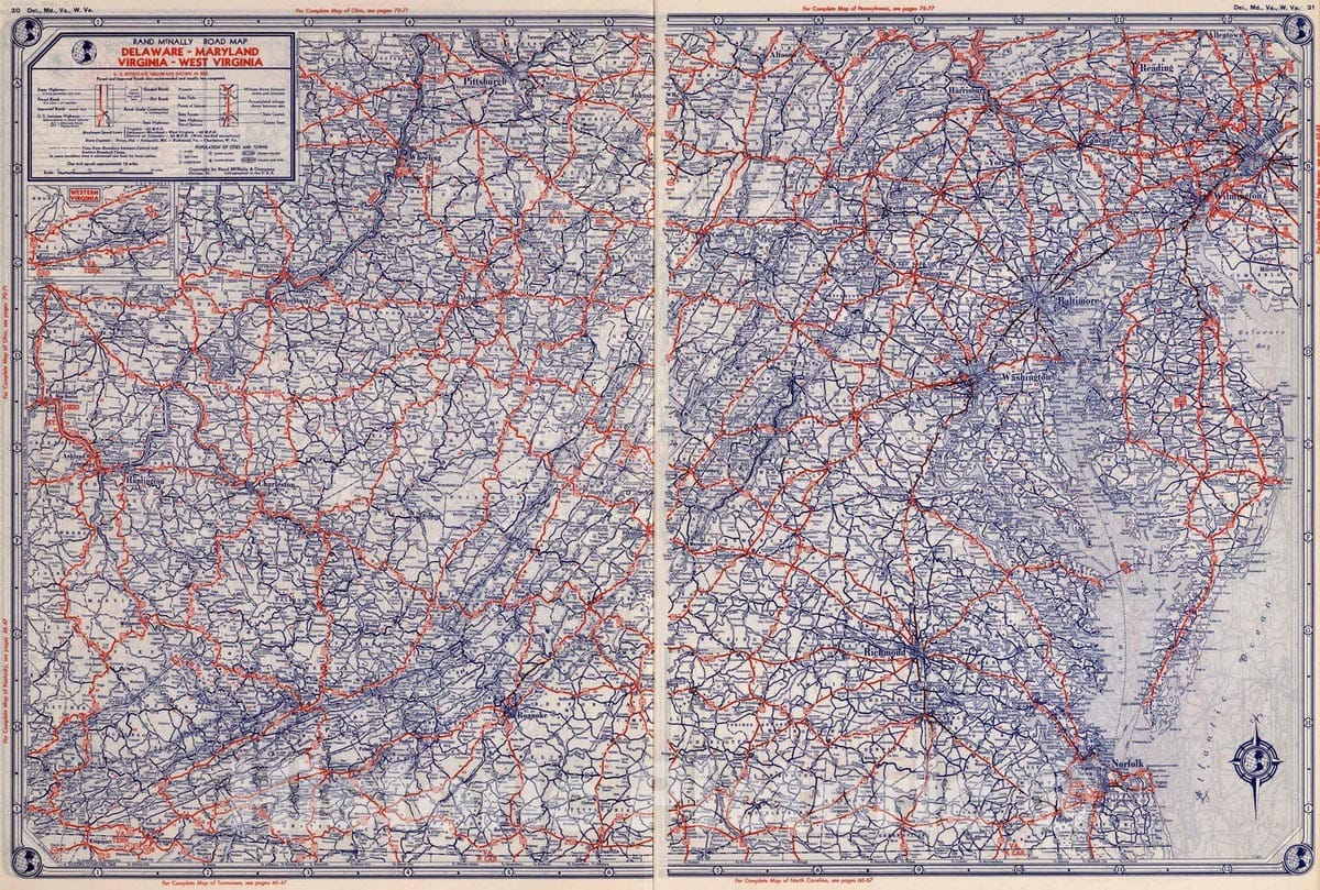 • .Historic Map : National Atlas - 1939 Rand McNally Road map: Delaware - Maryland, Virginia - West Virginia - Vintage Wall Art