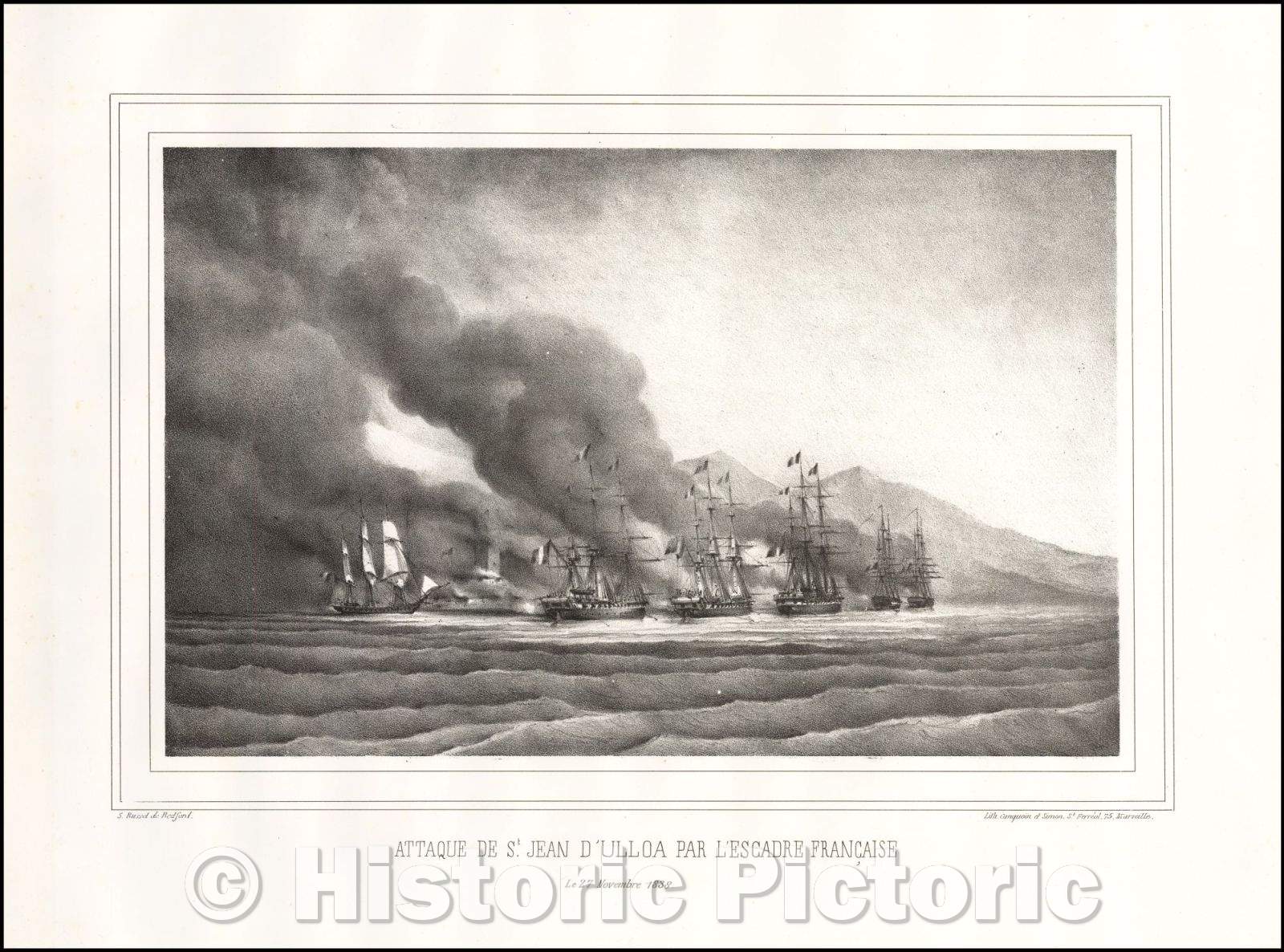 • Historic Map - (The Pastry War) Attaque de St. Jean D'Ulloa Par L'Escadre Francaise/Decisive Battle of the Pastry War, 1839, Russel de Bedford - Vintage Wall Art