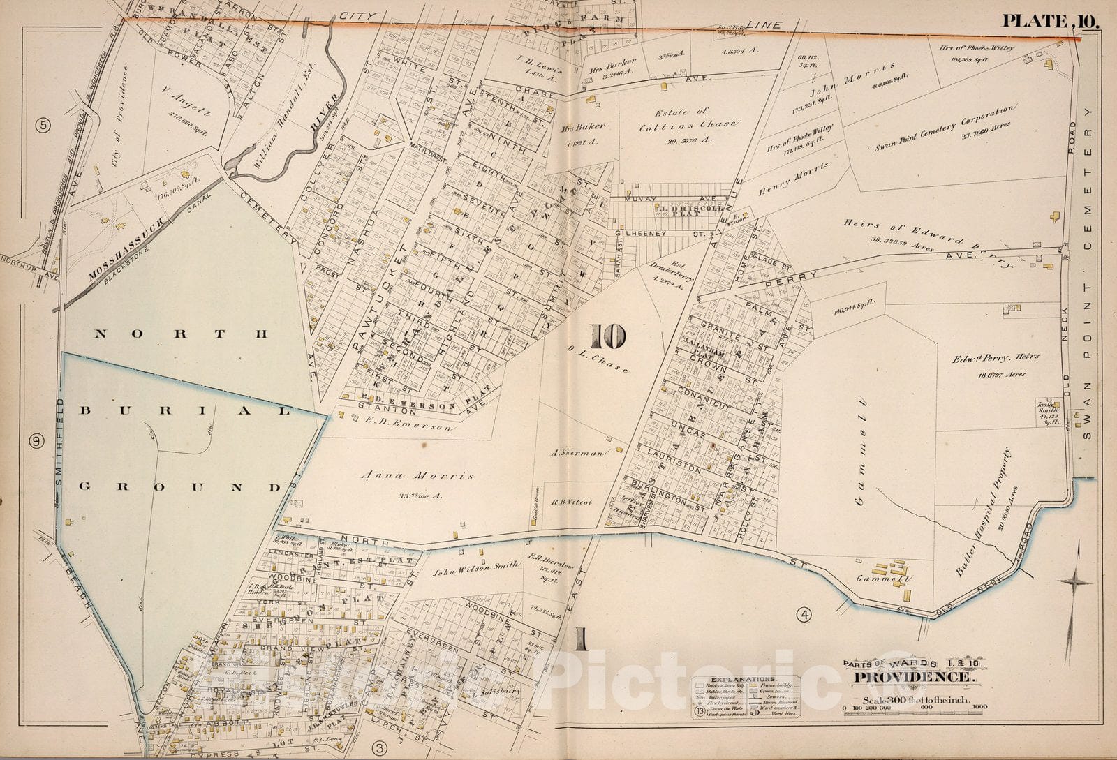 Historic Map : Providence (R.I.), City Atlas Map, Plate 10. Parts of Wards 1 & 10, Providence. 1882 - Vintage Wall Art