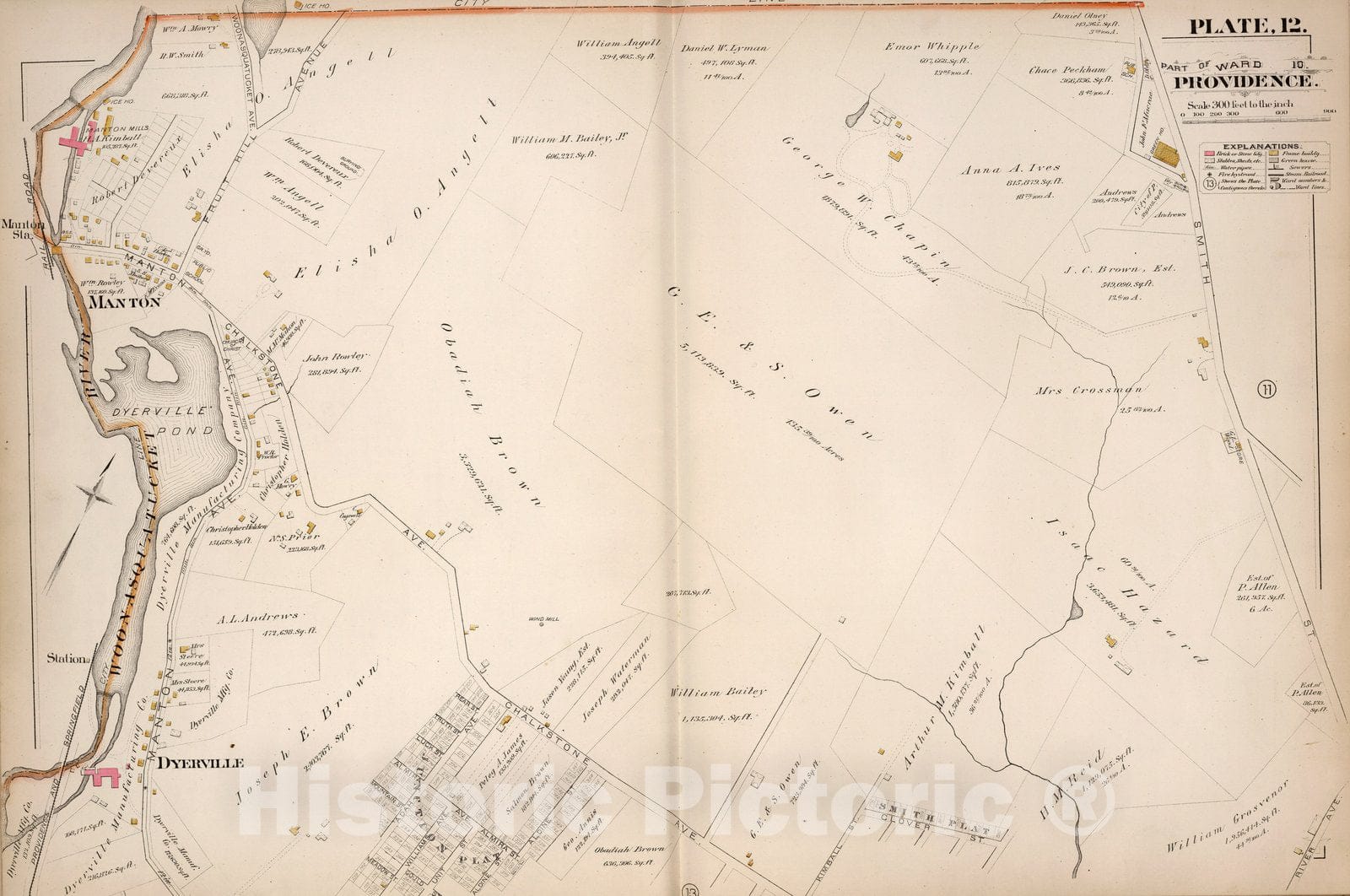 Historic Map : Providence (R.I.), City Atlas Map, Plate 12. Part of Ward 10, Providence. 1882 - Vintage Wall Art